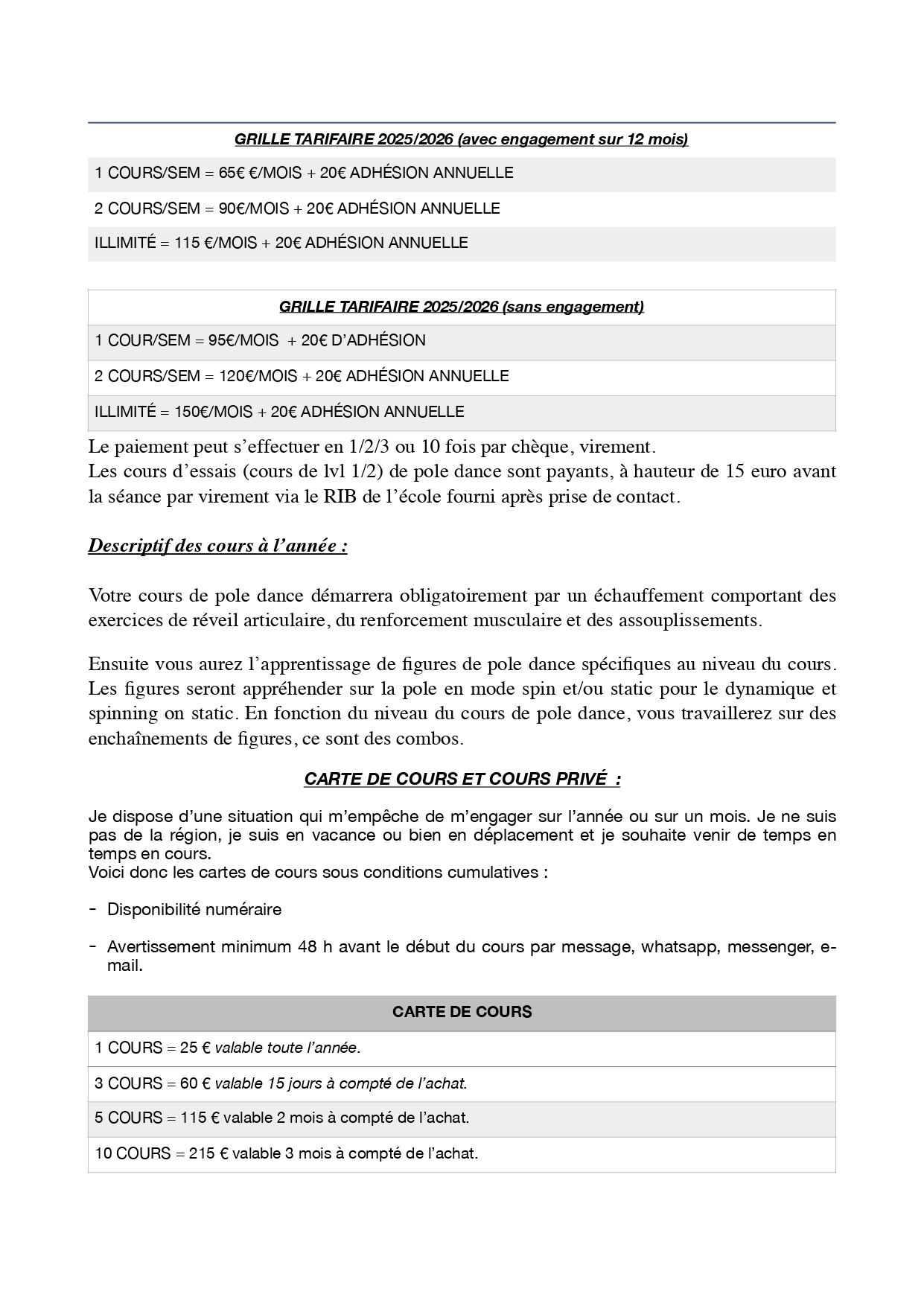 Des cours de pole les lundis, mardis, jeudis, vendredis, samedi.