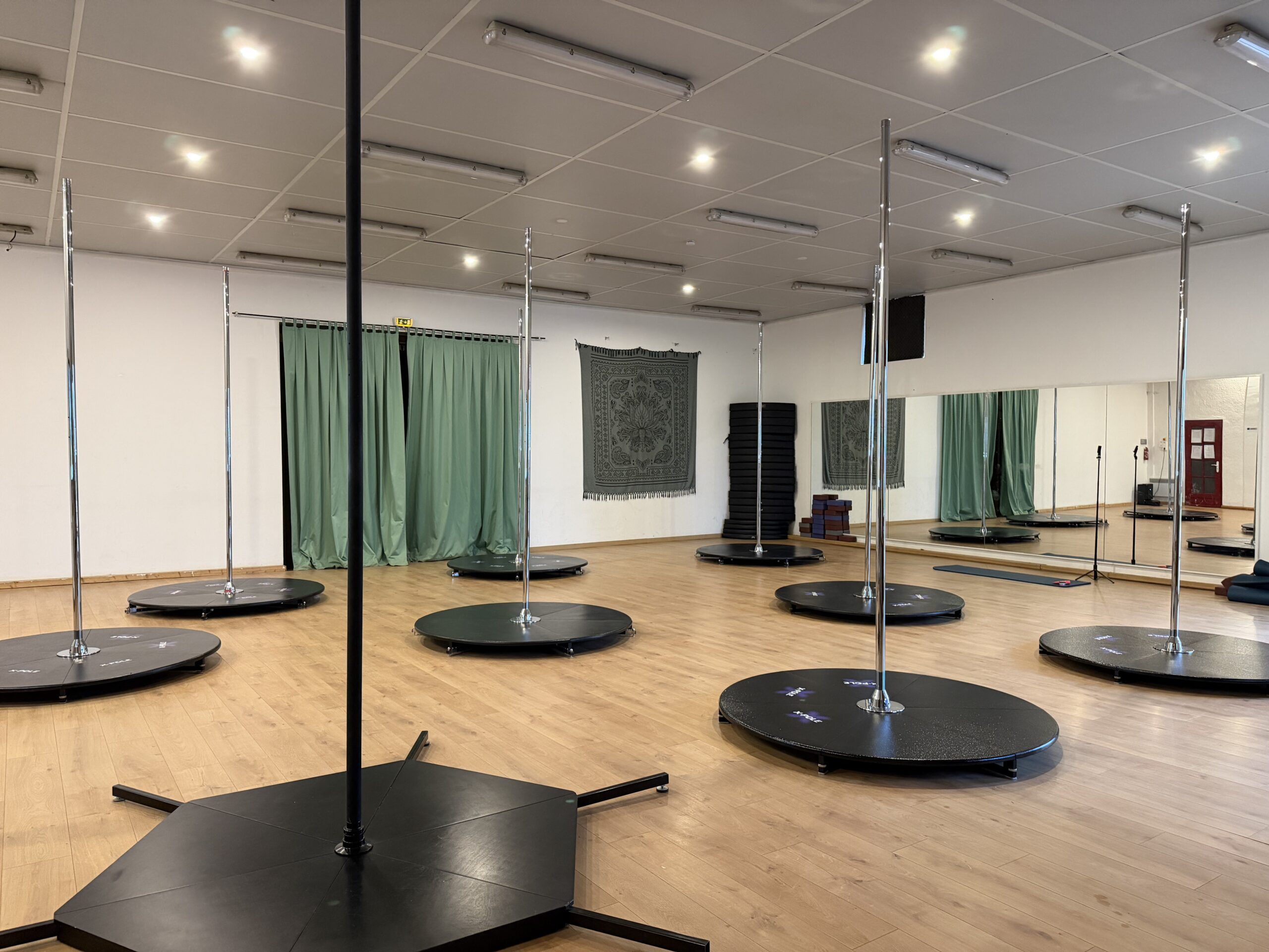 - 150 m2 dédié à votre activité avec 9 barres de pole dance X-Stage/Agm quick and spin avec 3 m de hauteur.